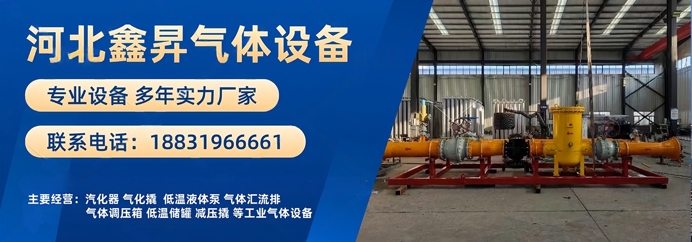 河北鑫昇氣體設備有限公司是一家國內專業(yè)從事各種氣體設備研發(fā)、制造,銷售與服務為一體的企業(yè)。主要產(chǎn)品有氣化撬、氣化站、氣體匯流排、低溫液體泵、CNG瓶組、CNG調壓箱、CNG減壓撬、天然氣調壓柜、空溫式氣化器、水浴式汽化器等,業(yè)務覆蓋河北、河南、湖北、陜西、黑龍江、新疆、內蒙等地。